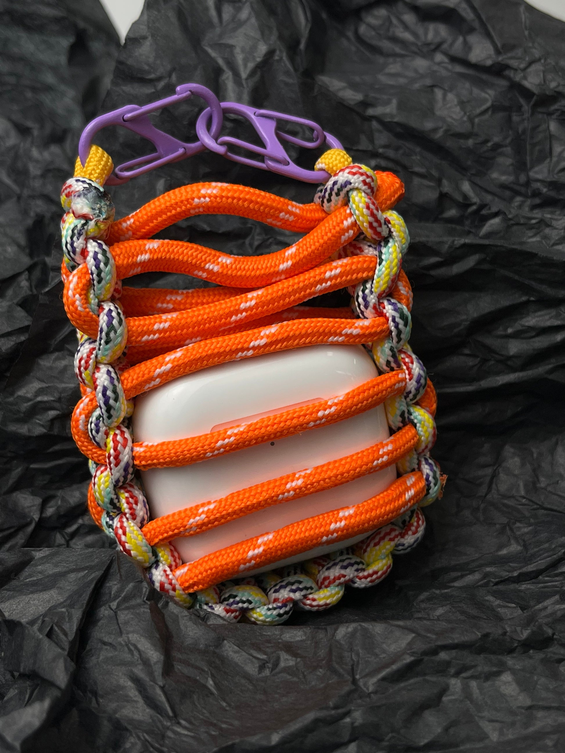 Elevate your Airpods protection with our unique handmade rope - woven case. Colorful braided ropes, combining vibrant hues, wrap snugly around your device. The sturdy purple clip adds portability. Each case is crafted with care, a one - of - a - kind accessory. Stand out with this blend of functionality and artistry, perfect for adding a boho - chic touch to your daily tech carry.