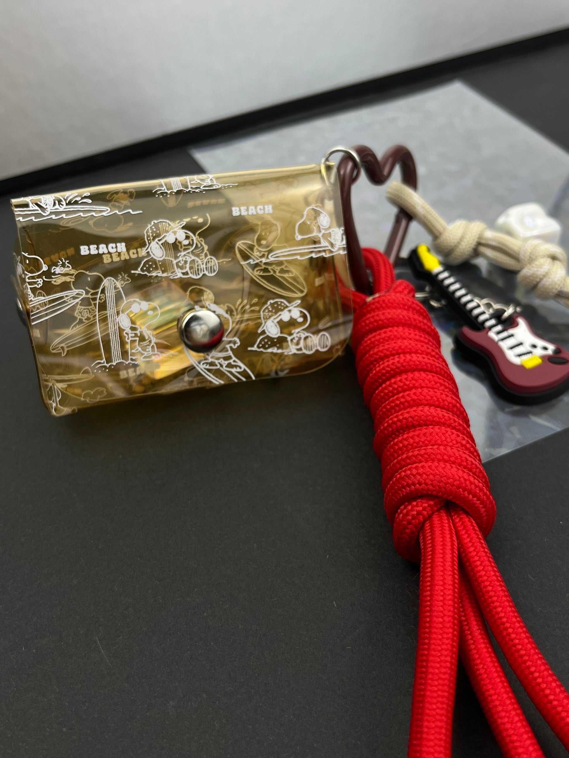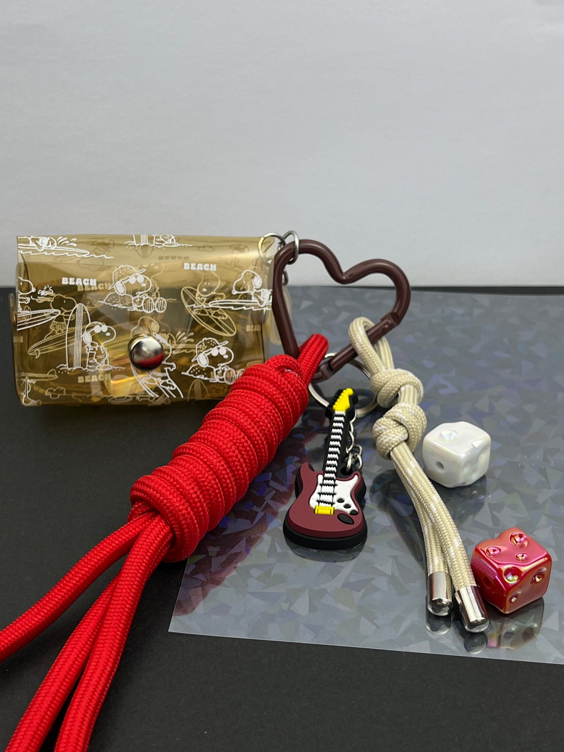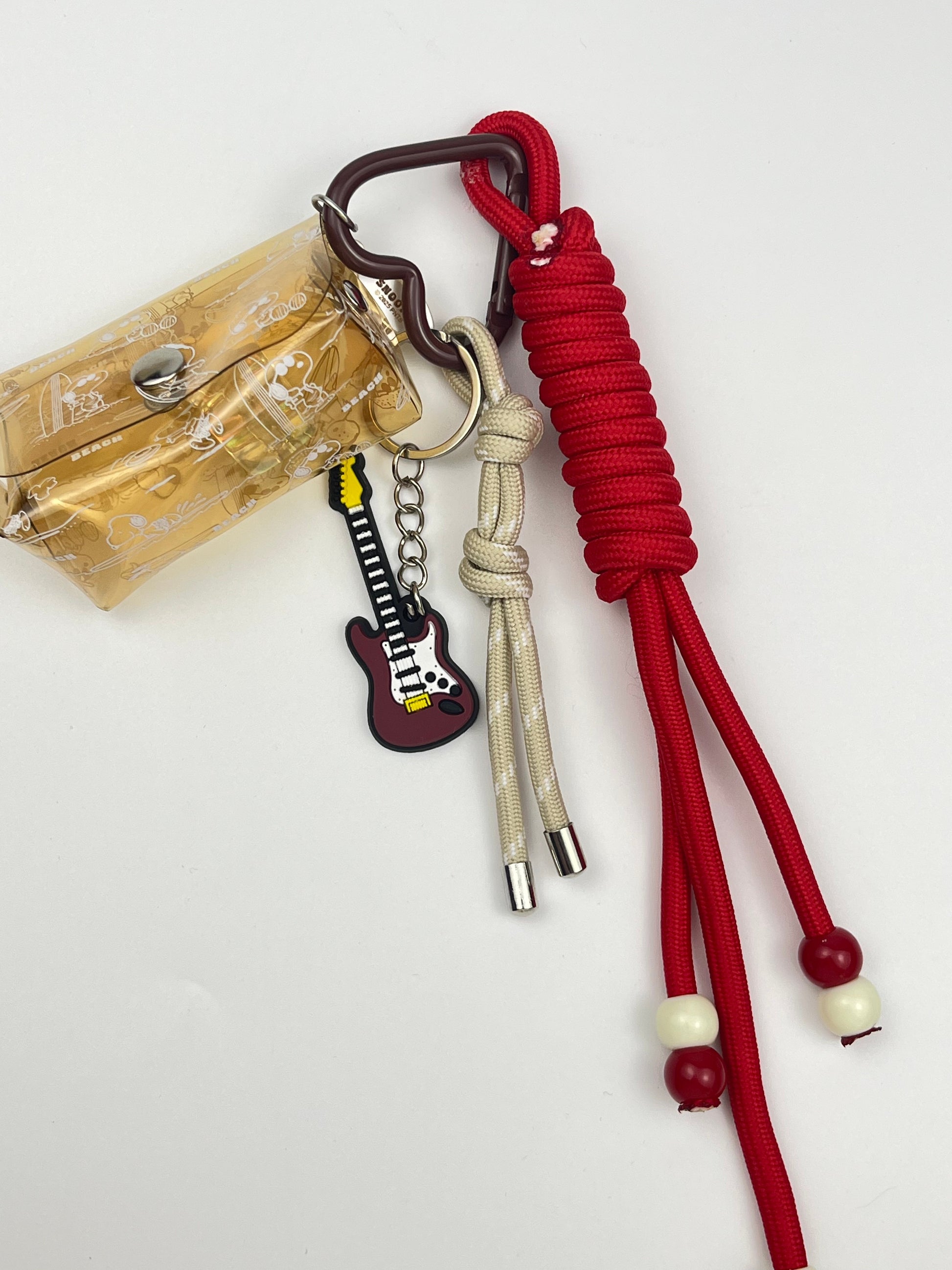 This keychain blends retro charm and creativity! A clear case with cute patterns, a vivid guitar pendant, and hand - woven ropes in red and beige. It's not just for keys—hang it on bags to show your music - loving, stylish side. Durable materials ensure long - term use. Perfect for adding a unique, artsy touch to daily essentials.